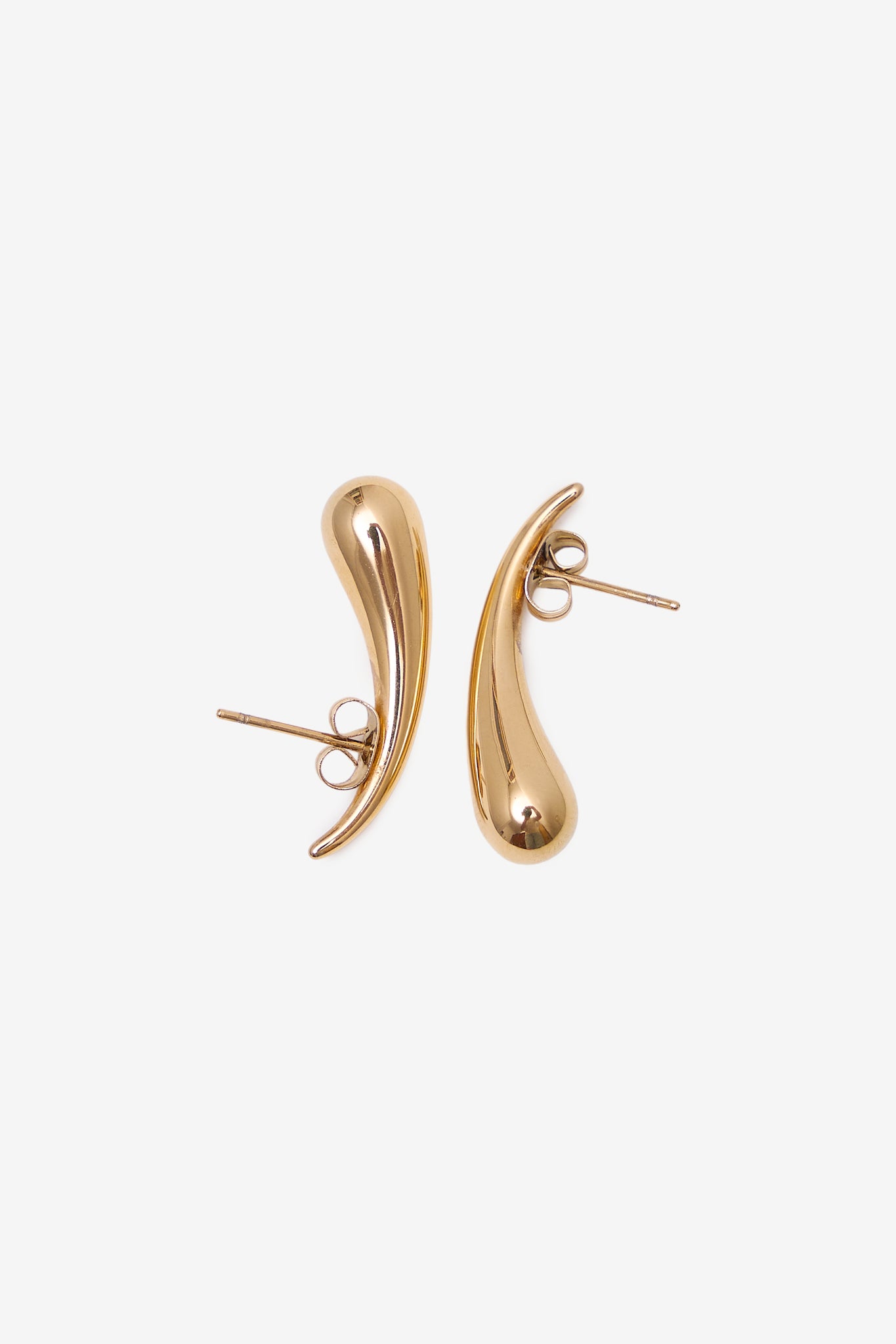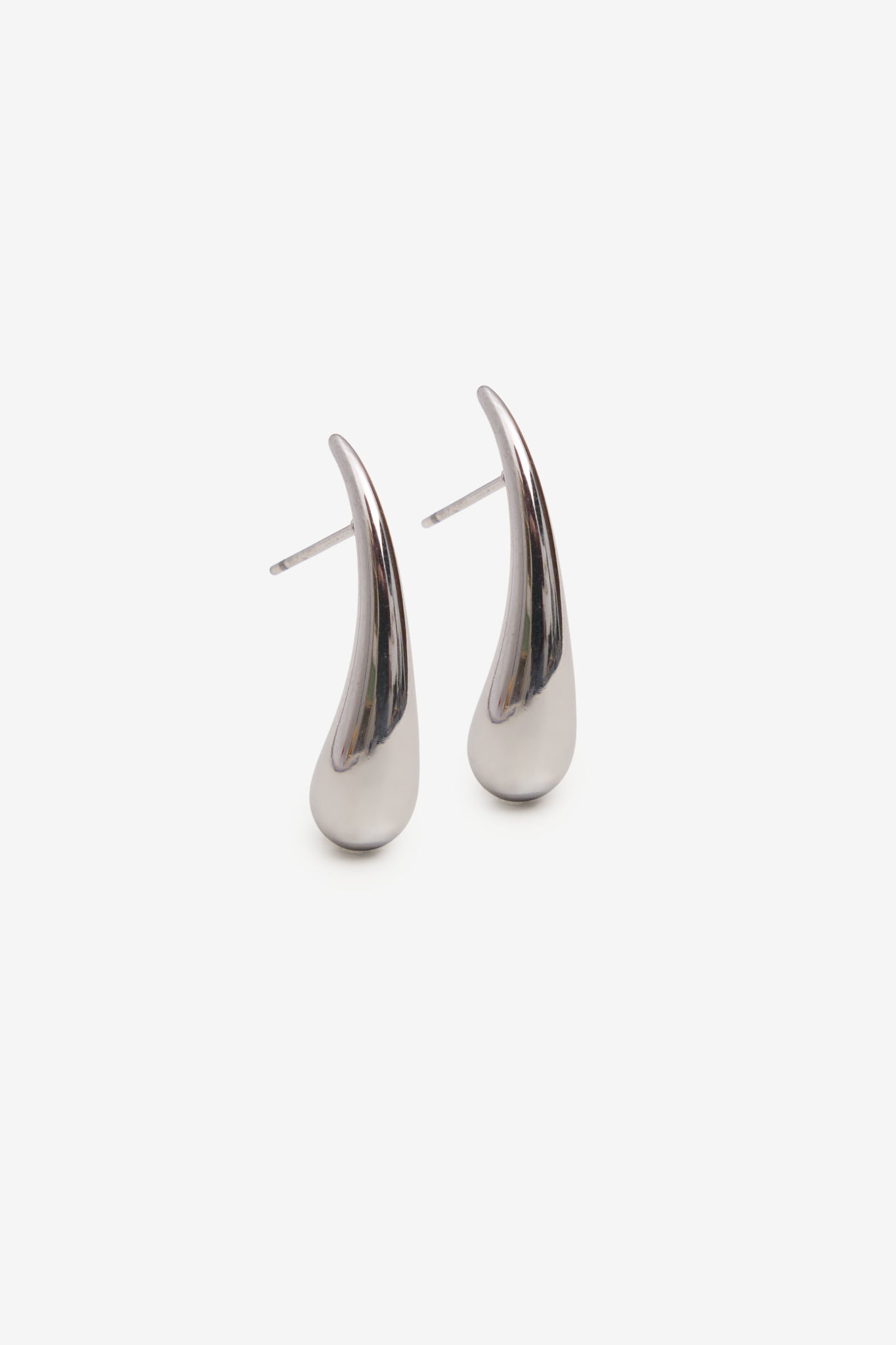 Brincos em aço inoxidável em formato gota minimalista. Elegantes e versáteis, ideais para um look sofisticado.