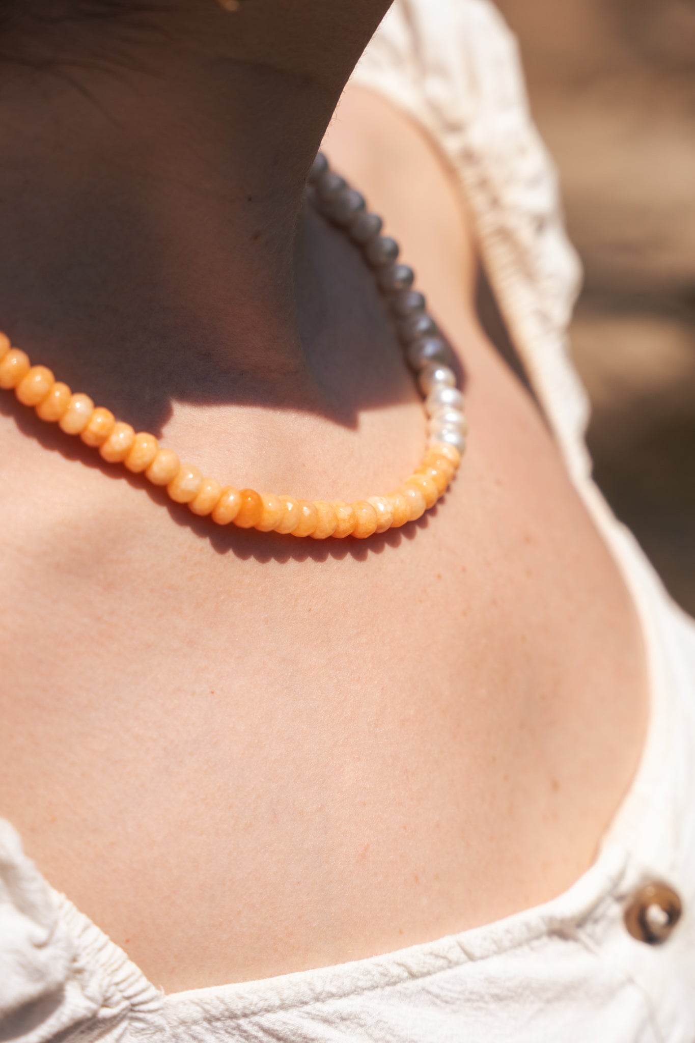 O Colar Carcavelos é inspirado nas tardes douradas, onde o sol encontra o mar com uma luz suave e quente. Com pérolas naturais e contas facetadas em tom coral, este colar celebra a energia tranquila do verão na costa portuguesa. Um toque delicado e luminoso que eleva qualquer look de forma natural. ☀️