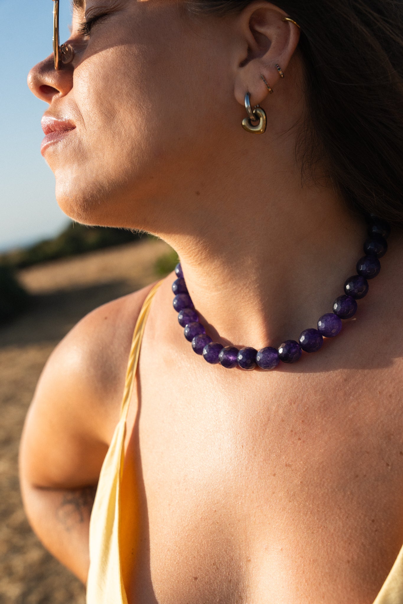 O Colar Comporta é inspirado nos tons profundos do oceano ao entardecer, quando o céu roxo se reflete nas águas calmas da costa alentejana. Com contas em tom roxo intenso e fecho dourado, este colar evoca a sofisticação natural e o charme despreocupado dos dias de verão na Comporta.