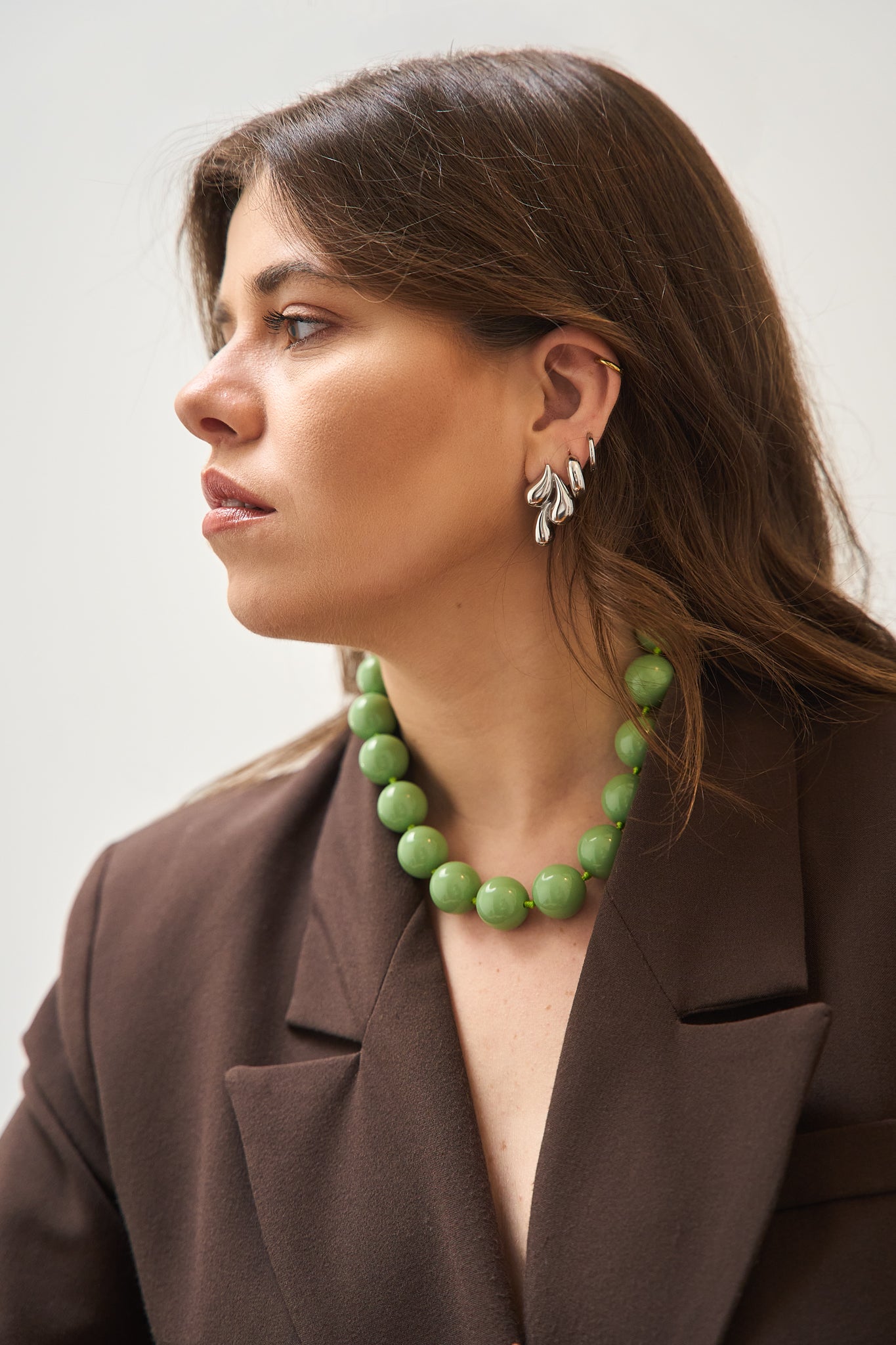 Brincos em aço inoxidável com design orgânico e acabamento polido. Leves, modernos e perfeitos para o dia a dia.