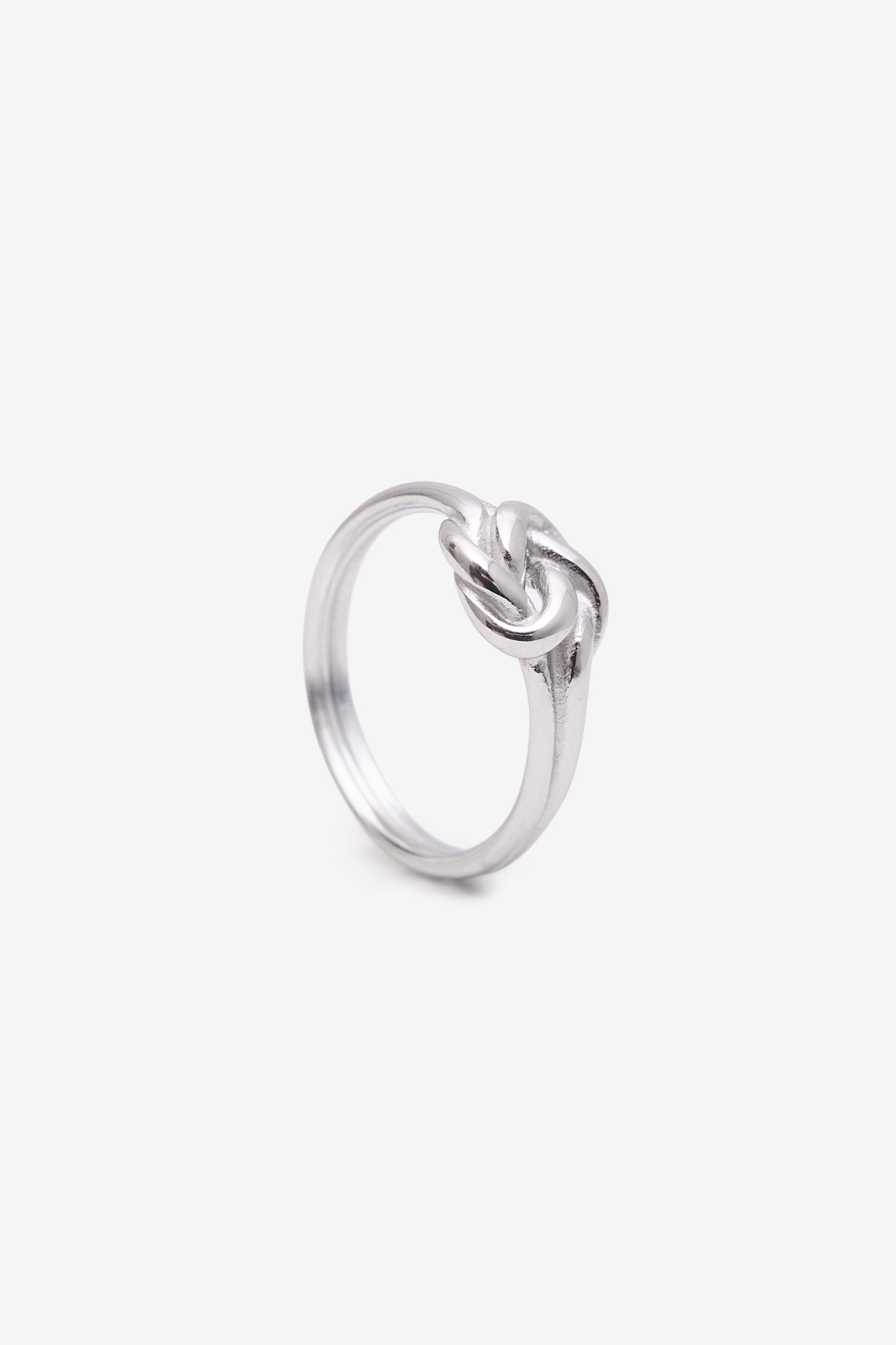 Anel delicado com nó central que simboliza união e eternidade.